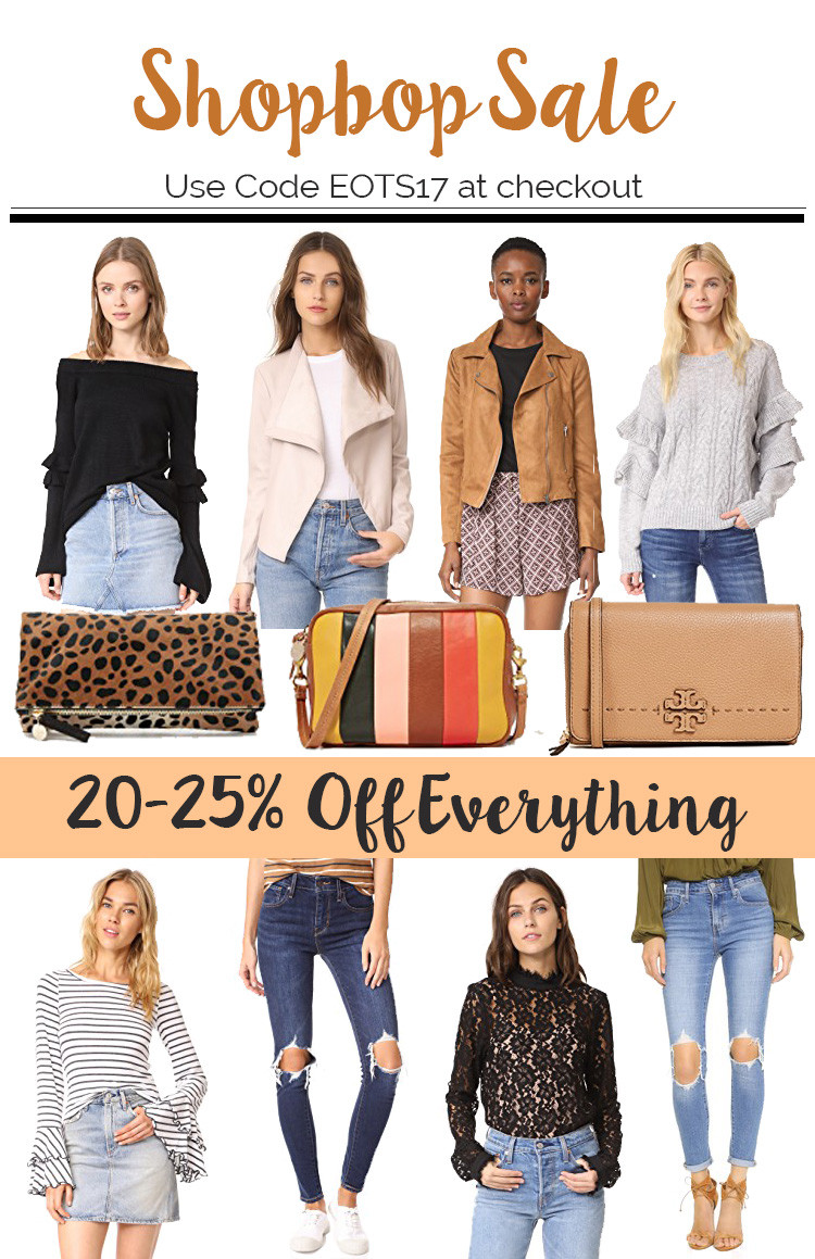 Shopbop is having a 3 day sale on EVERYTHING on their website. That means full priced items and sale items. Use the code EOTS17 at checkout to get 20-25% off your entire purchase!